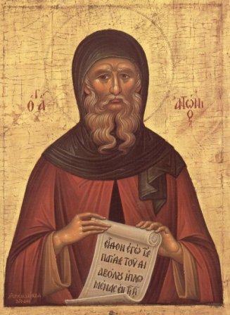 Οὗτος ὁ Μακάριος καὶ Πανθαύμαστος Ἀββᾶς καὶ Πατὴρ ἡμῶν Ἀντώνιος ὁ μέγας, εἰς καιρὸν ὁποῦ εὑρίσκετο εἰς τὴν ἔρημον καὶ ἀσκήτευεν, ἐφάνη πρὸς αὐτὸν Ἄγγελος Κυρίου εἰς σχῆμα Καλογήρου, καὶ ὡς τὸν εἶδεν ὁ Ὅσιος, ἔκαμε πρὸς αὐτὸν μετάνοιαν.